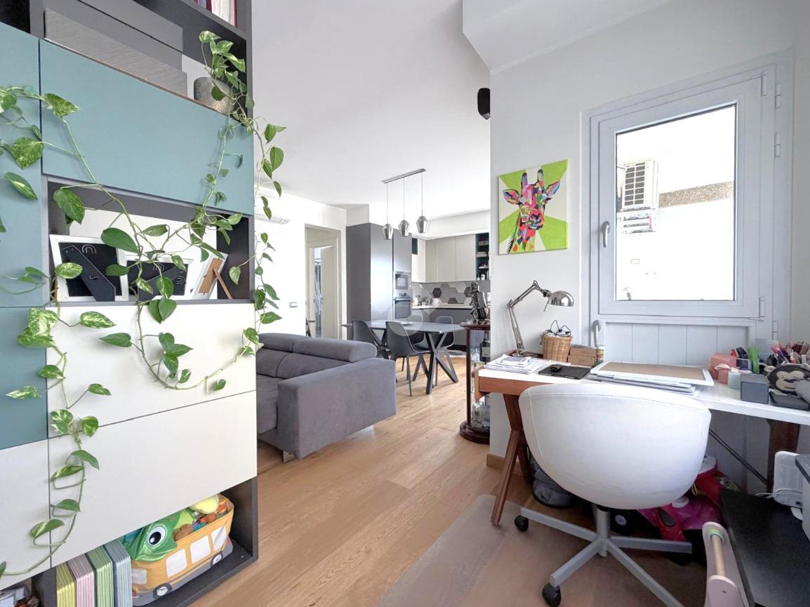 L’immobile presenta finiture di qualità, pavimentazione uniforme, infissi moderni con ottimo isolamento termo-acustico e impianti efficienti. Grazie al piano alto e all’affaccio sul parco, l’appartamento risulta silenzioso e molto luminoso. All’interno dell’area condominiale è possibile parcheggiare comodamente auto e moto, un valore aggiunto raro e molto apprezzato nella zona.