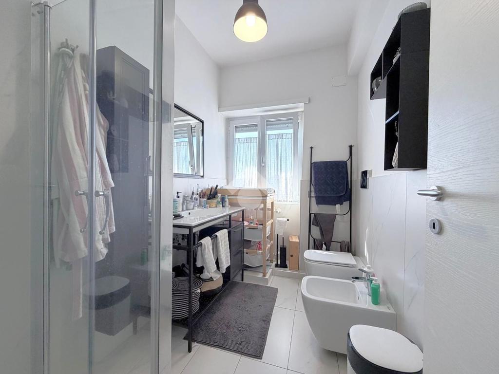 Il bagno, finestrato, è stato ristrutturato con materiali moderni ed è dotato di box doccia. Completa la proprietà un ripostiglio, utile per ottimizzare gli spazi e mantenere ordine all’interno della casa.