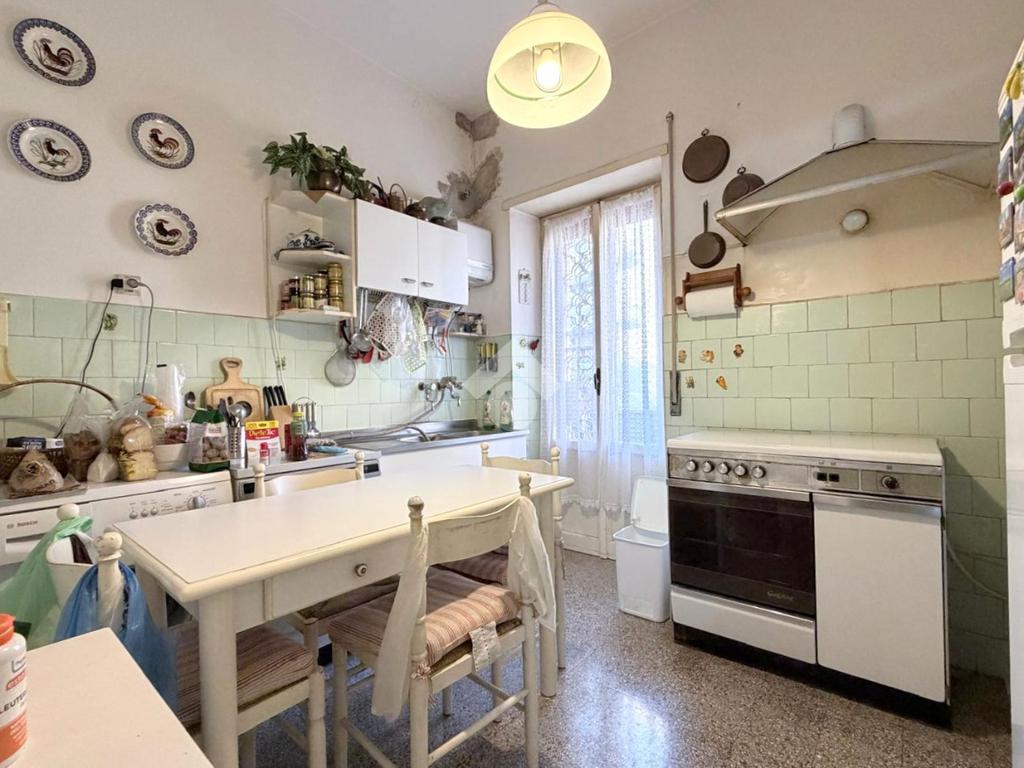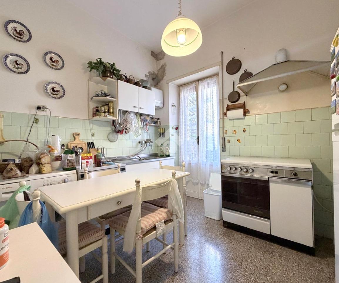 L’ingresso conduce a un ampio disimpegno che dà accesso al salone doppio di rappresentanza, luminoso e con affaccio esterno aperto. La cucina è abitabile e separata dalla zona giorno.