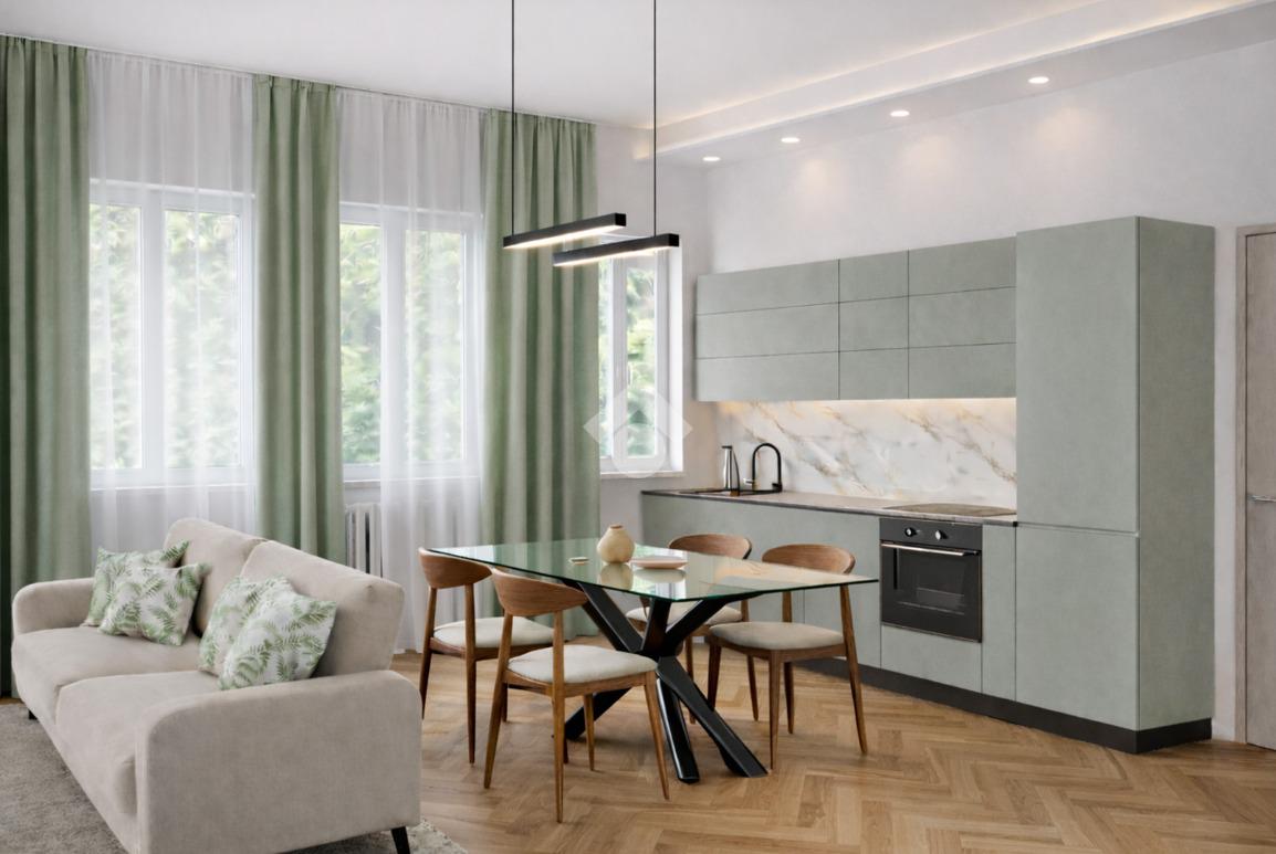 L’immobile sarà caratterizzato da una distribuzione degli spazi moderna e funzionale. L’ingresso condurrà direttamente nella zona giorno composta da ampio salone con cucina a vista, impreziosito dalla presenza di camino a bioetanolo, elemento di design che contribuirà a rendere l’ambiente accogliente e contemporaneo. La parete della cucina sarà rivestita in marmo, dettaglio elegante che valorizzerà l’intera area living.